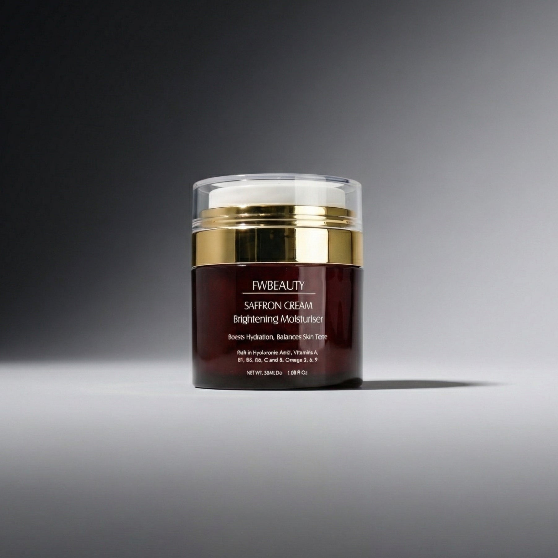 Pump to dispense required amount of product. Apply FWBEAUTY Saffron Cream starting from the middle of your face working outward. Massage the cream into the skin in circular motions. This will help simulate blood flow, and penetrate the ingredients deeper into the skin.